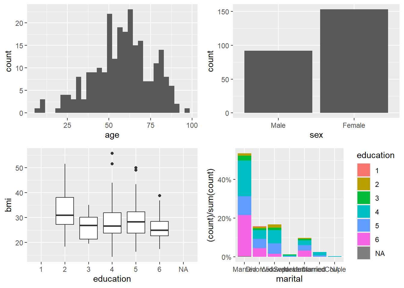 Before plotting, it is often useful to summarize, reshape, and clean your data. Many plotting tasks become straightforward once the dataset is in a tidy (“long”) format. The section below shows common operations that prepare your data for visualization.