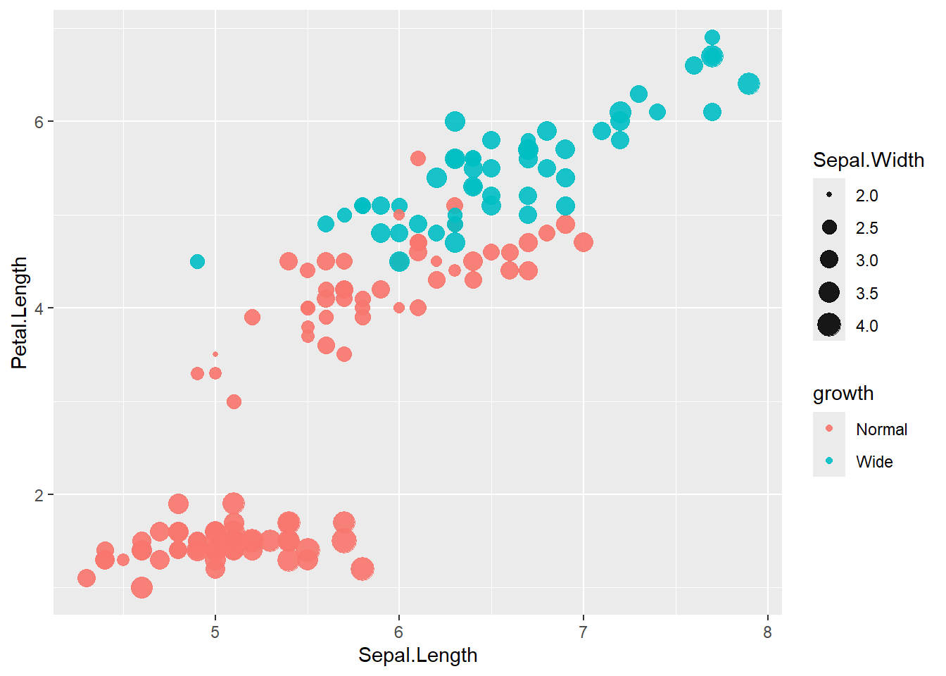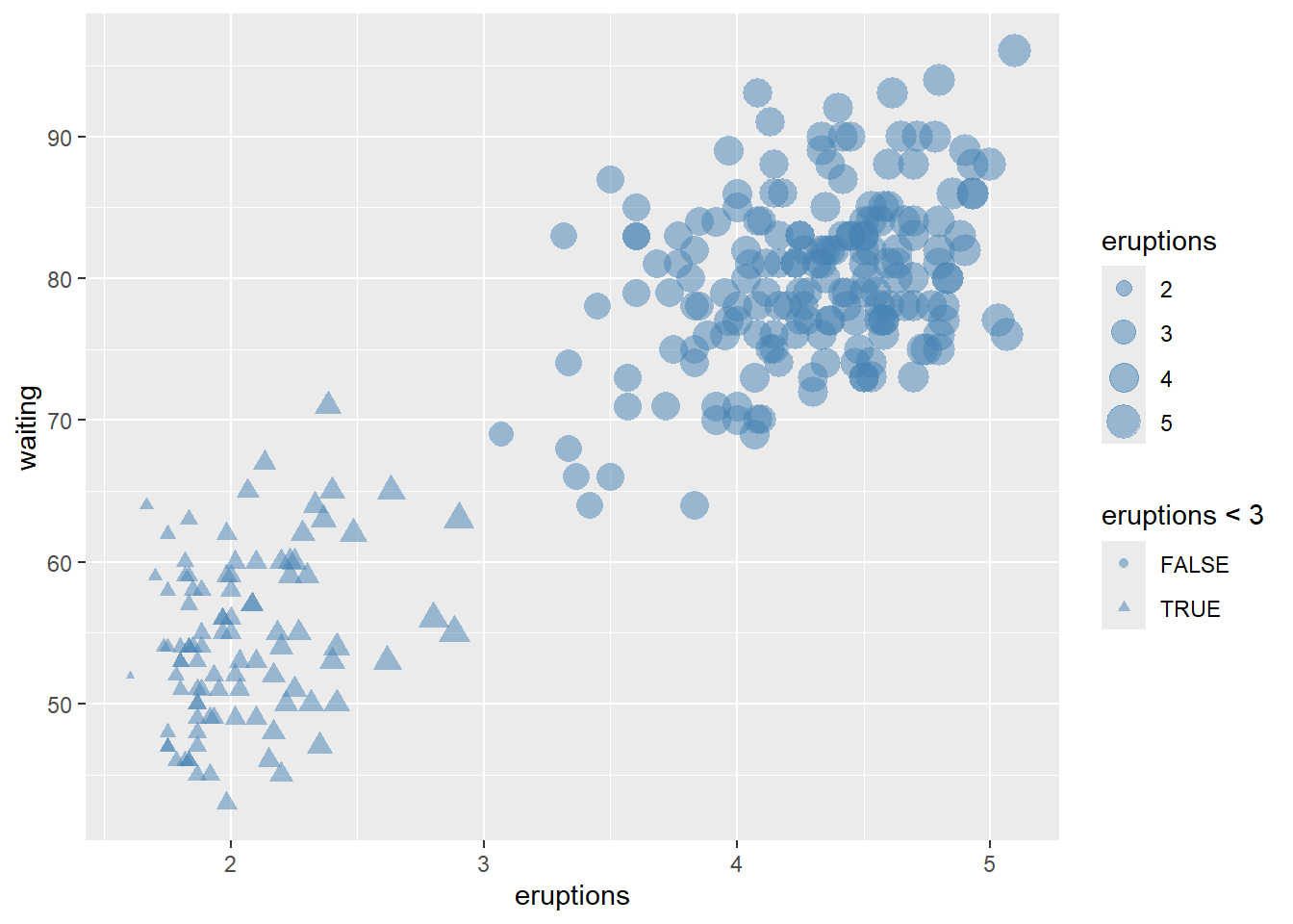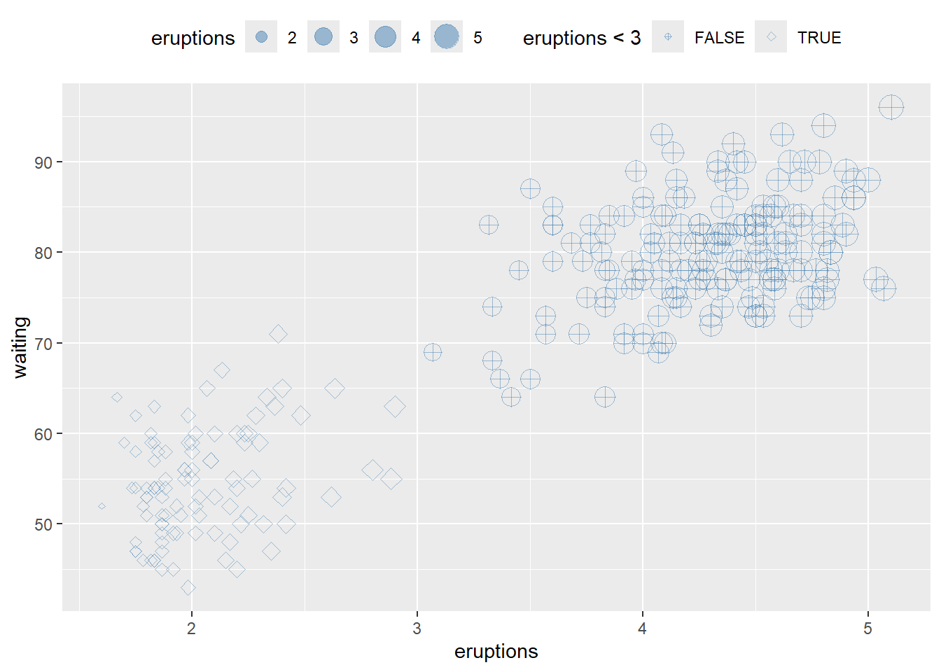 This example also shows manual fill scales with custom legend labels.
