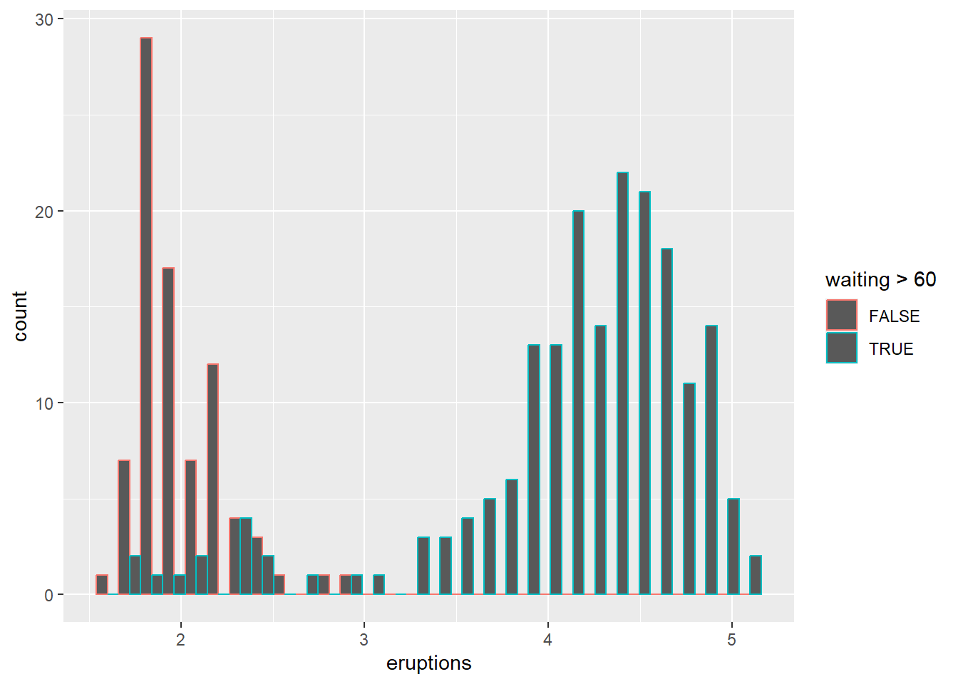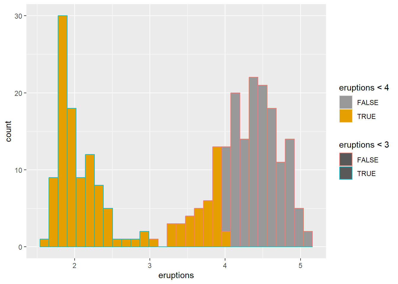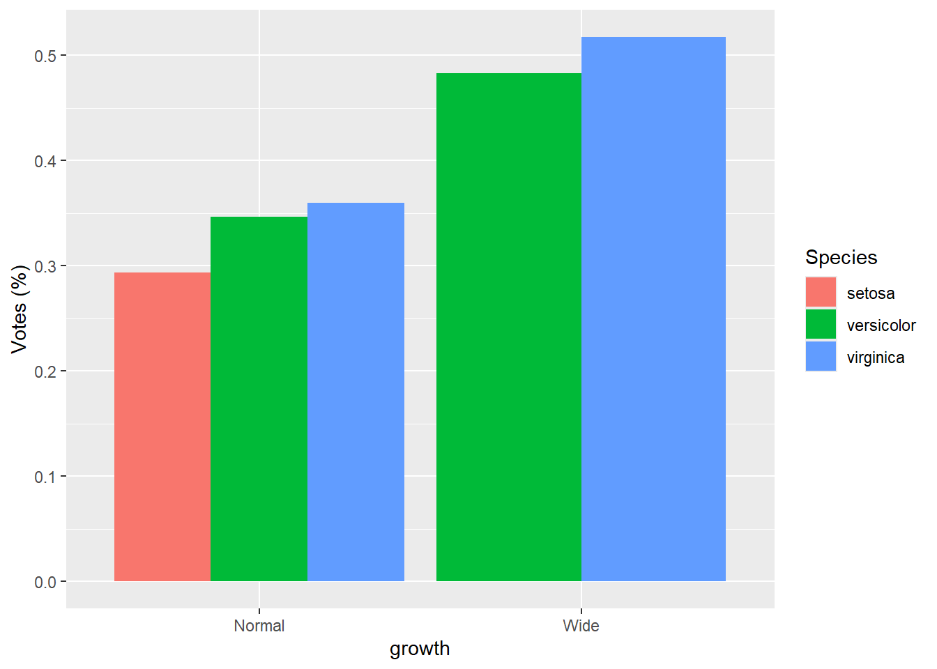 This example also shows manual fill scales with custom legend labels.