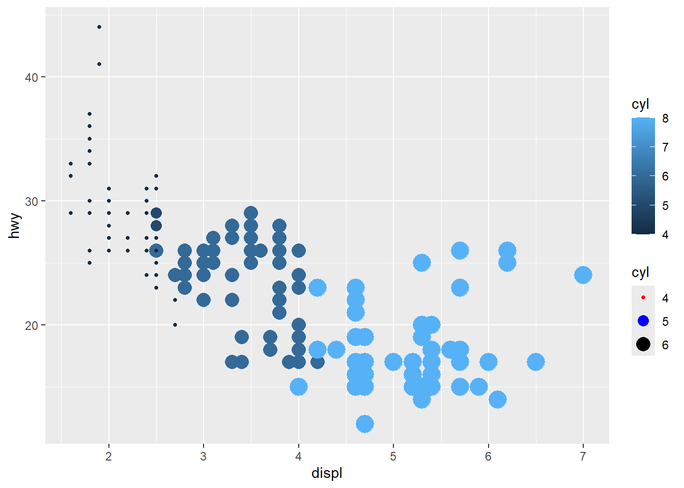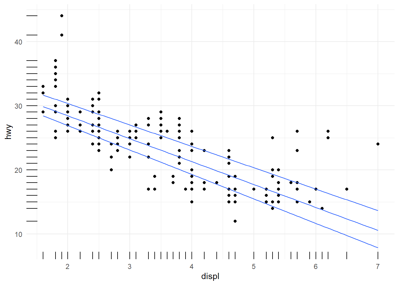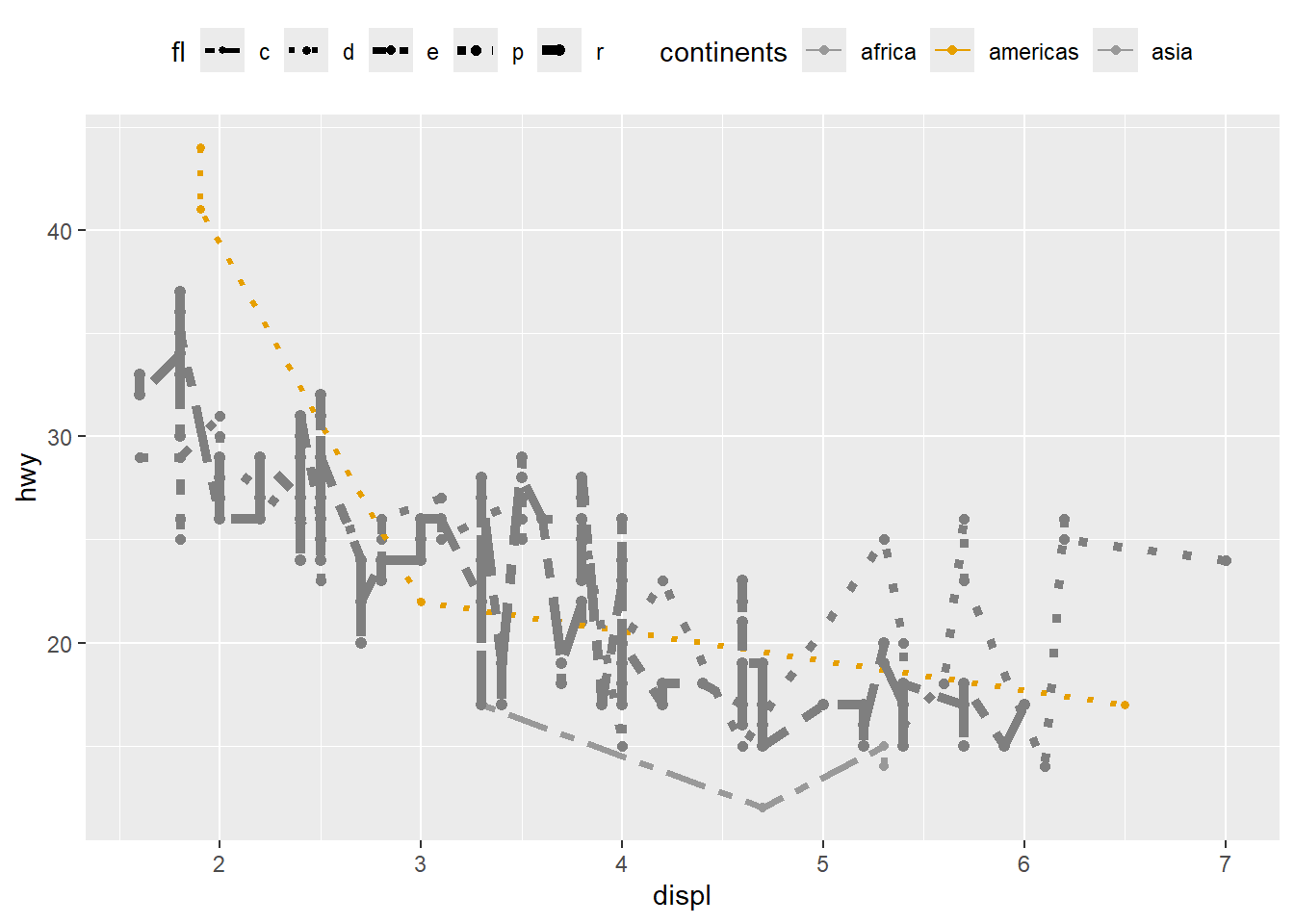 ggplot(dta, aes(x = displ, y = value)) +