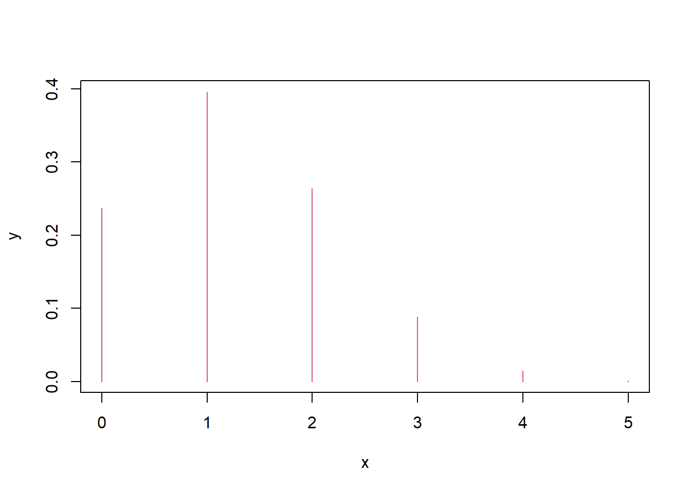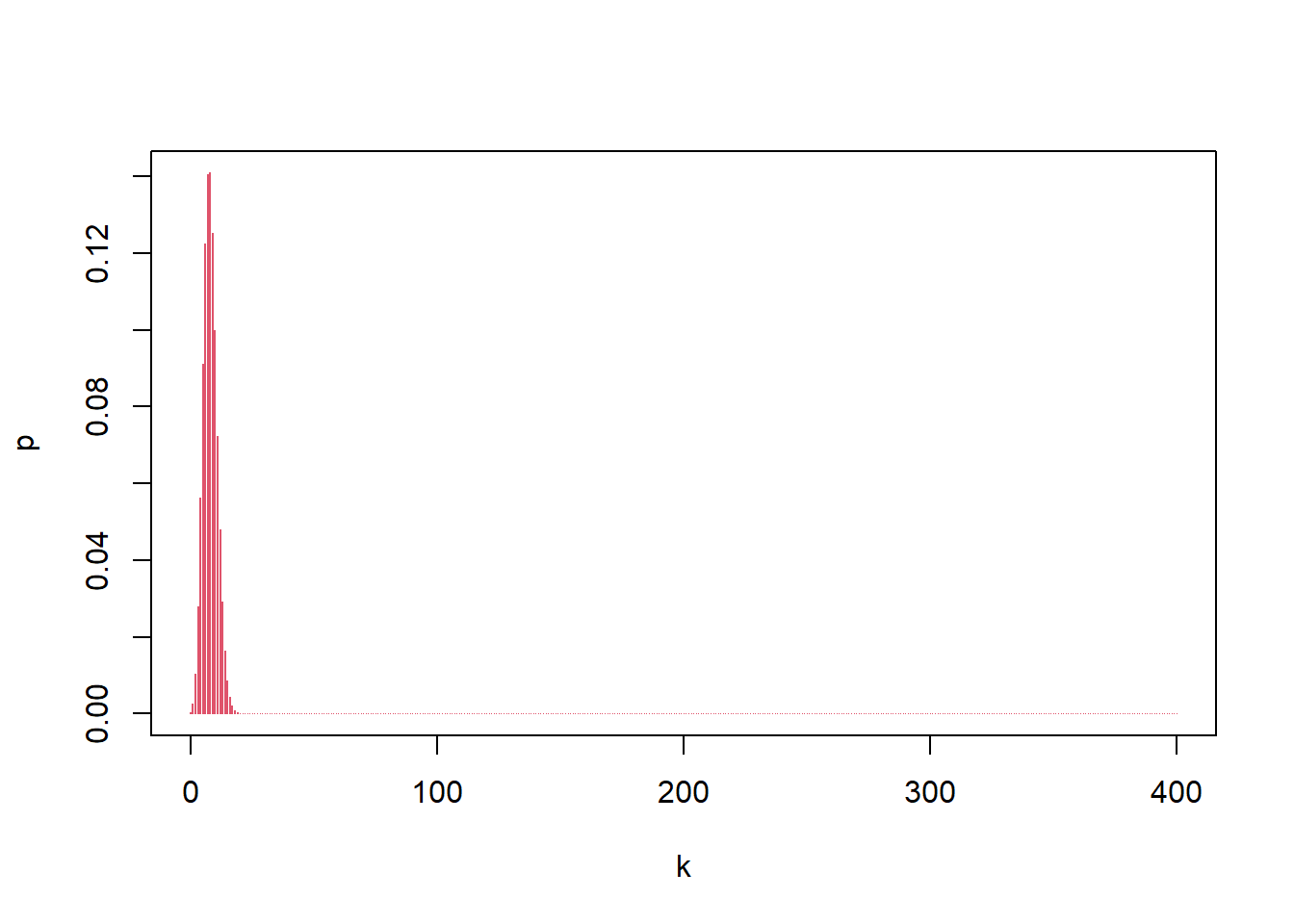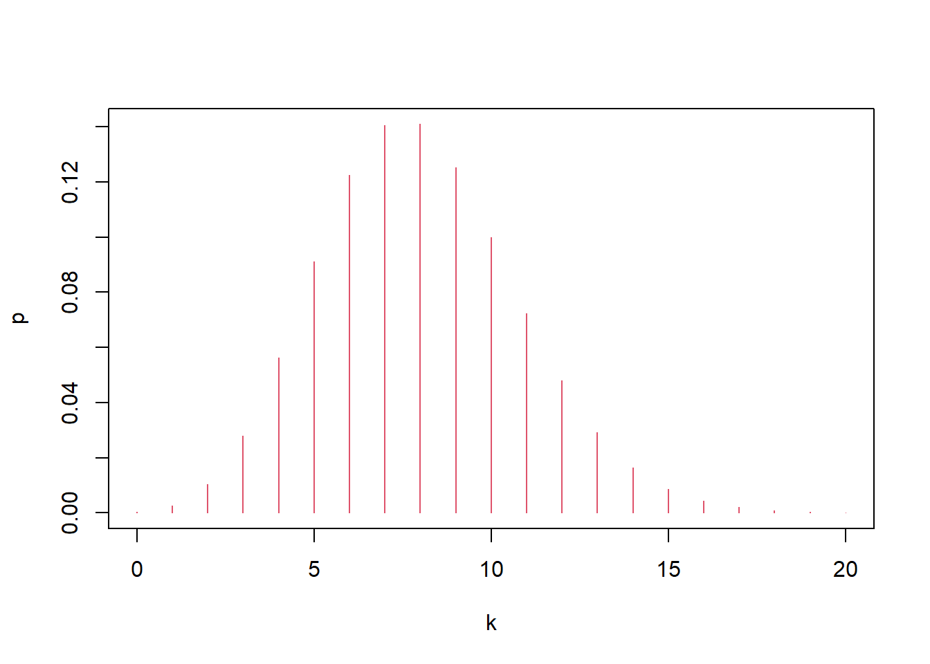 points(y,dbinom(y, size=12, prob=0.2),col=1) #binomial dist