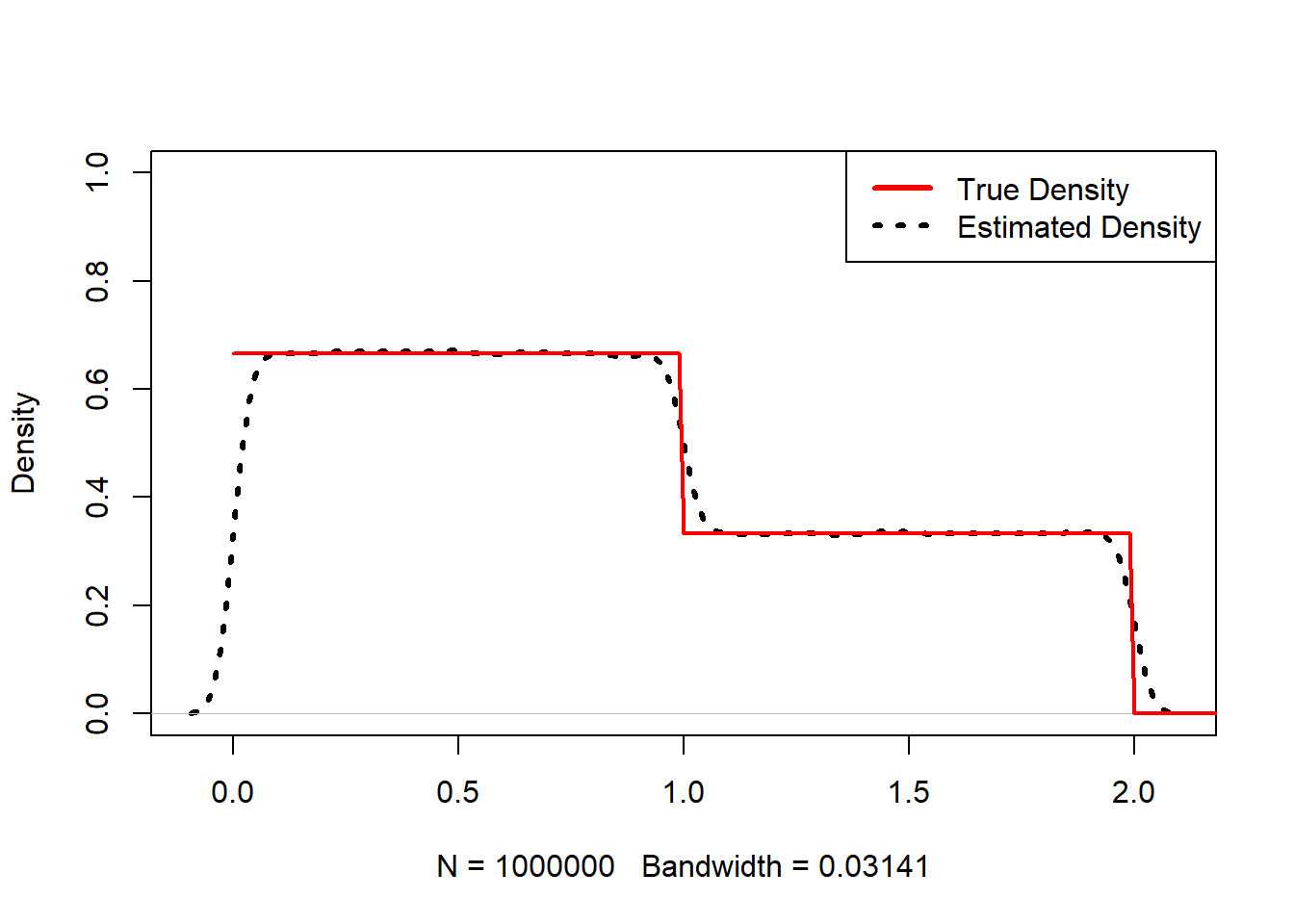 lines(x,Truth,col=2) #f dist