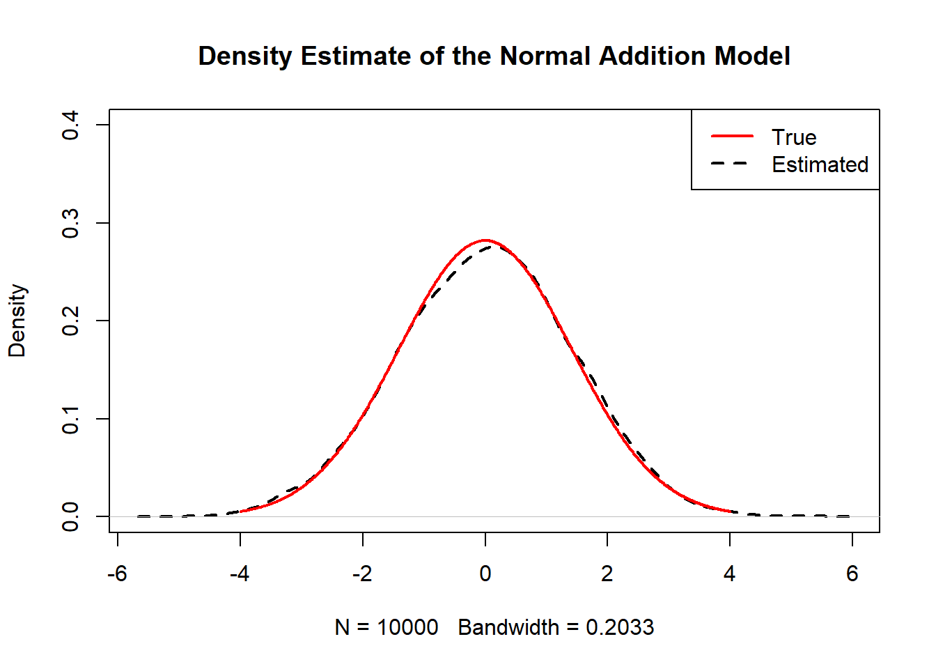 lines(XX,Npdf,lty=2,col=2)